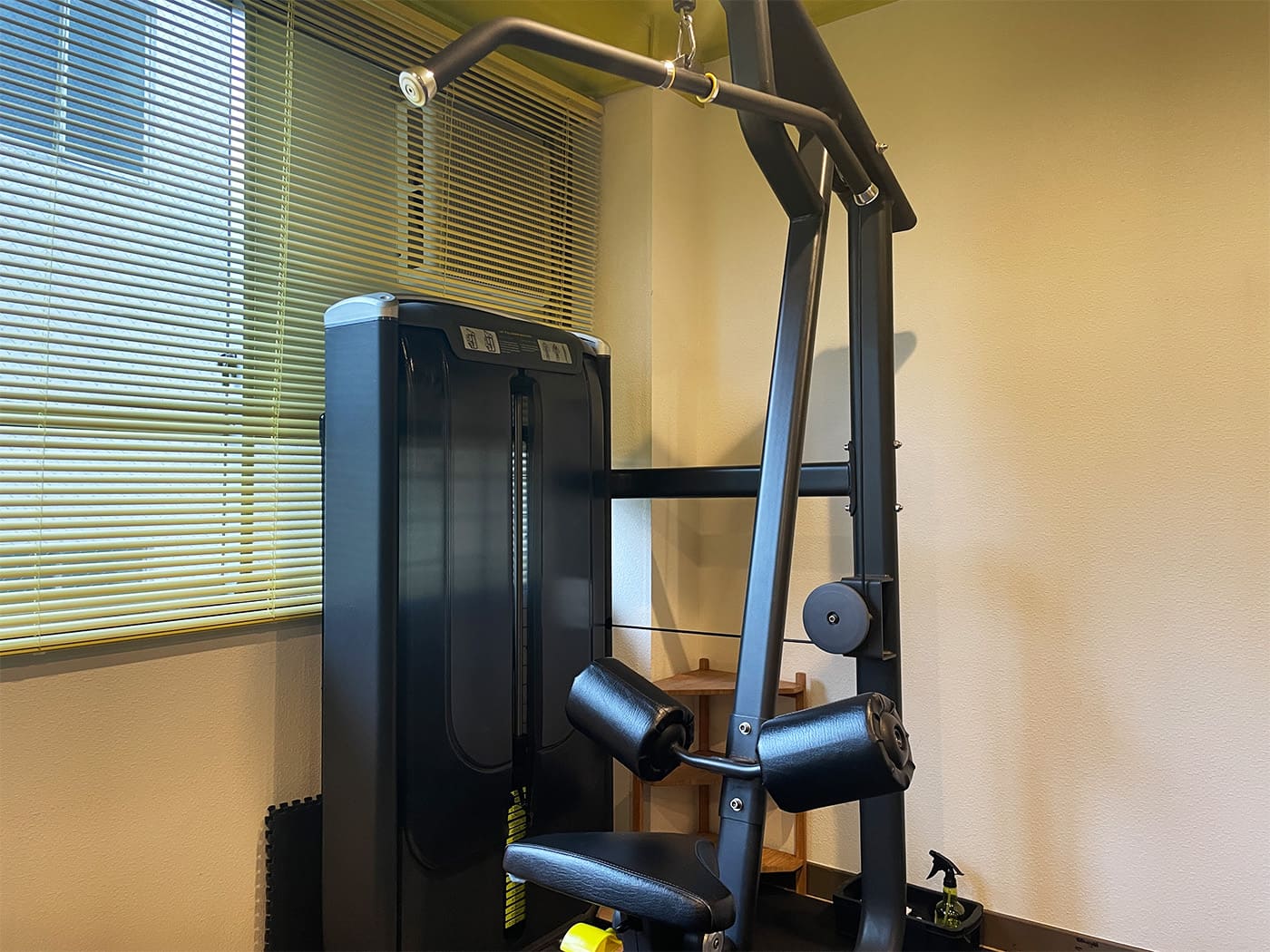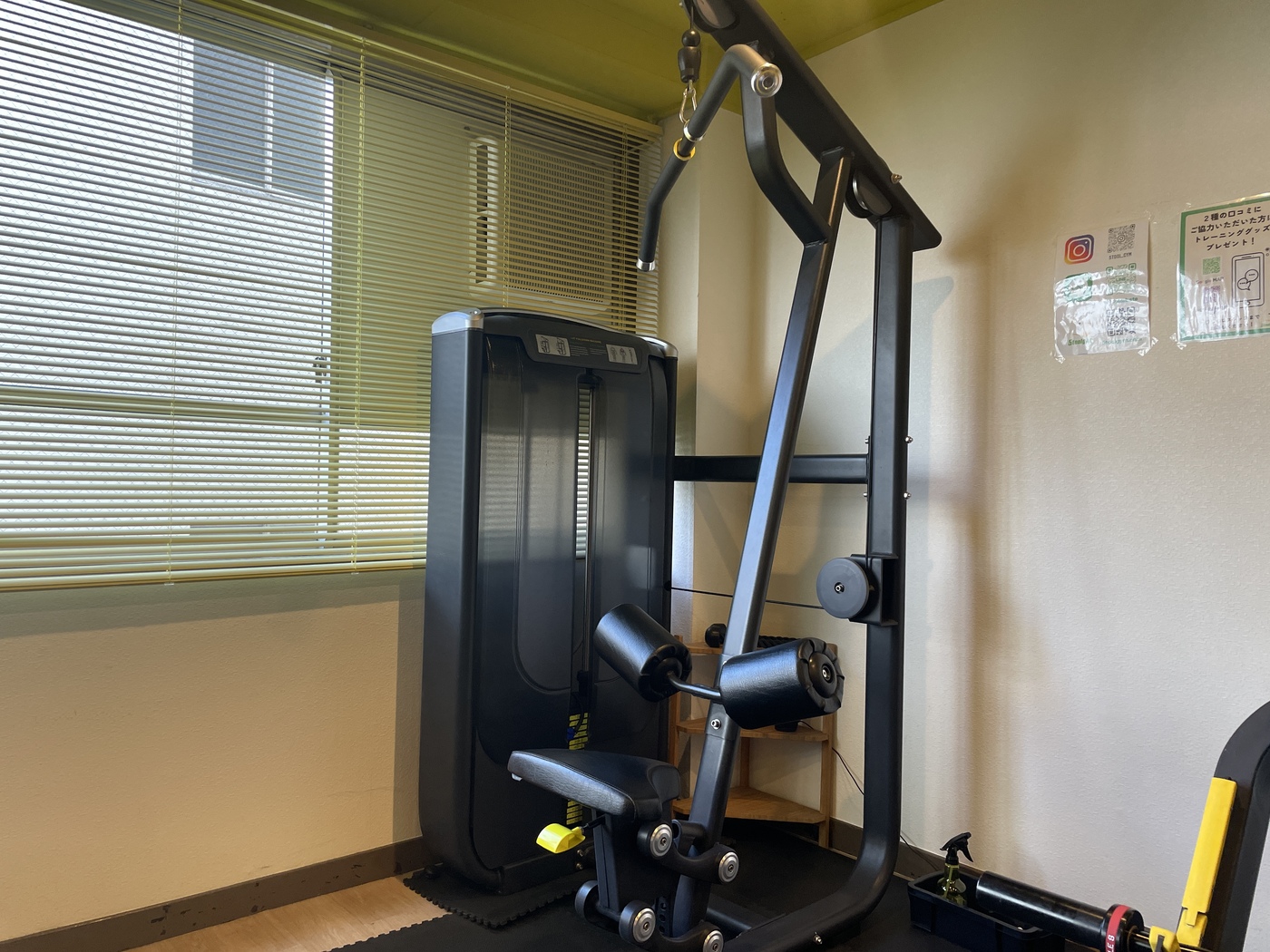 背中のトレーニング定番のラットプルダウンのマシンです。1台ございます。