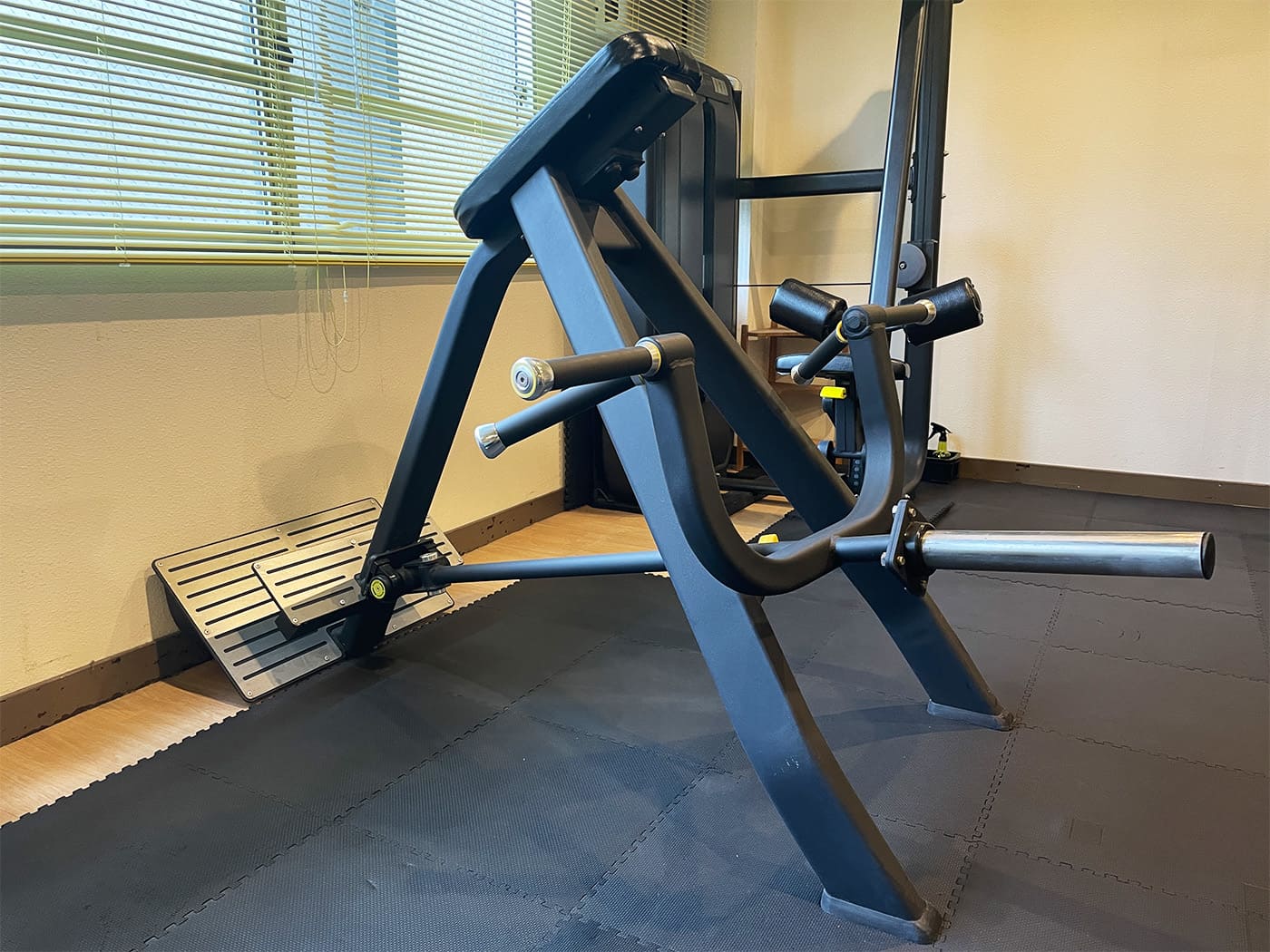 プレートローディング式のレッグエクステンション・カールのマシンです。プレートも300kg以上ご準備しております。