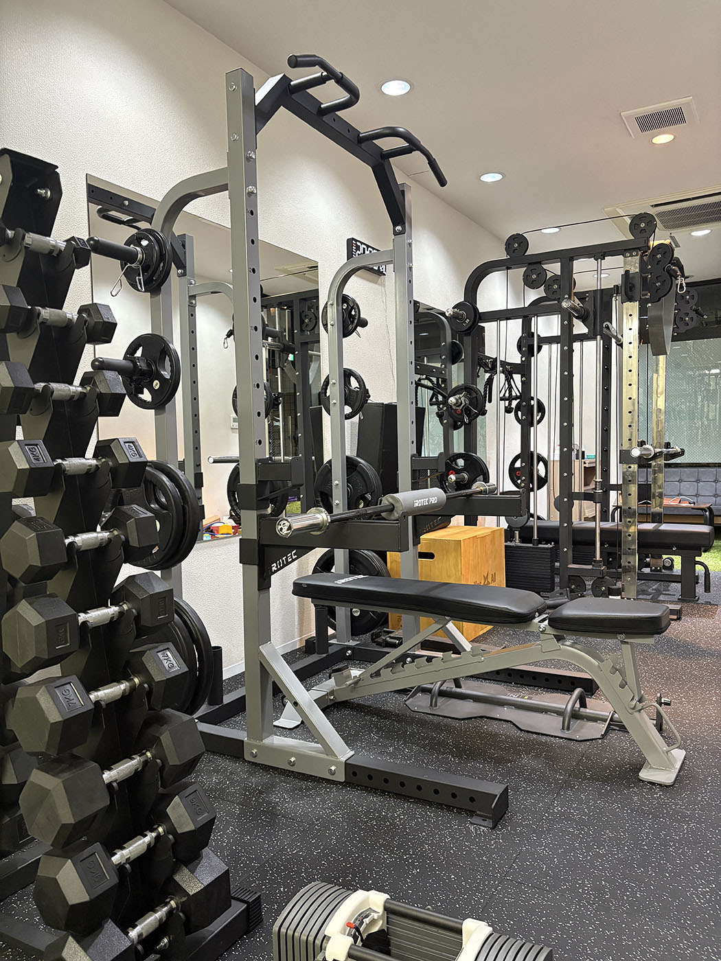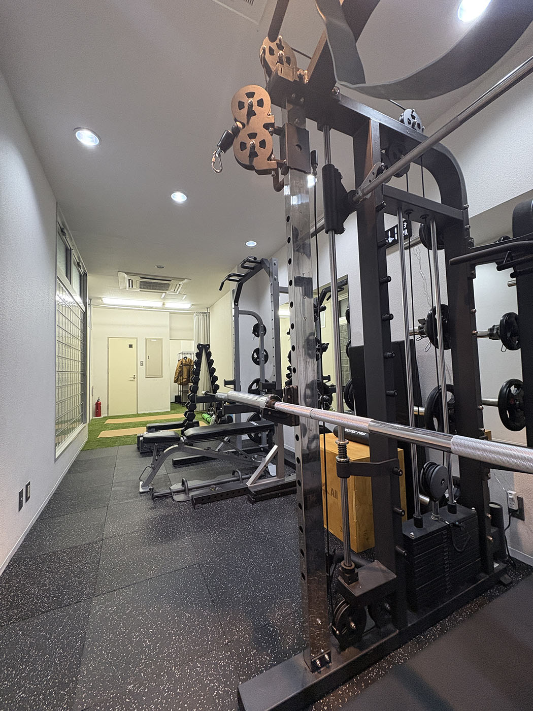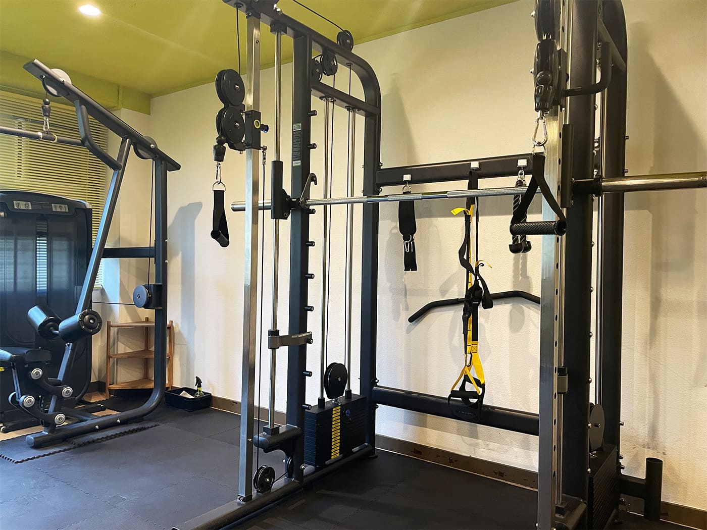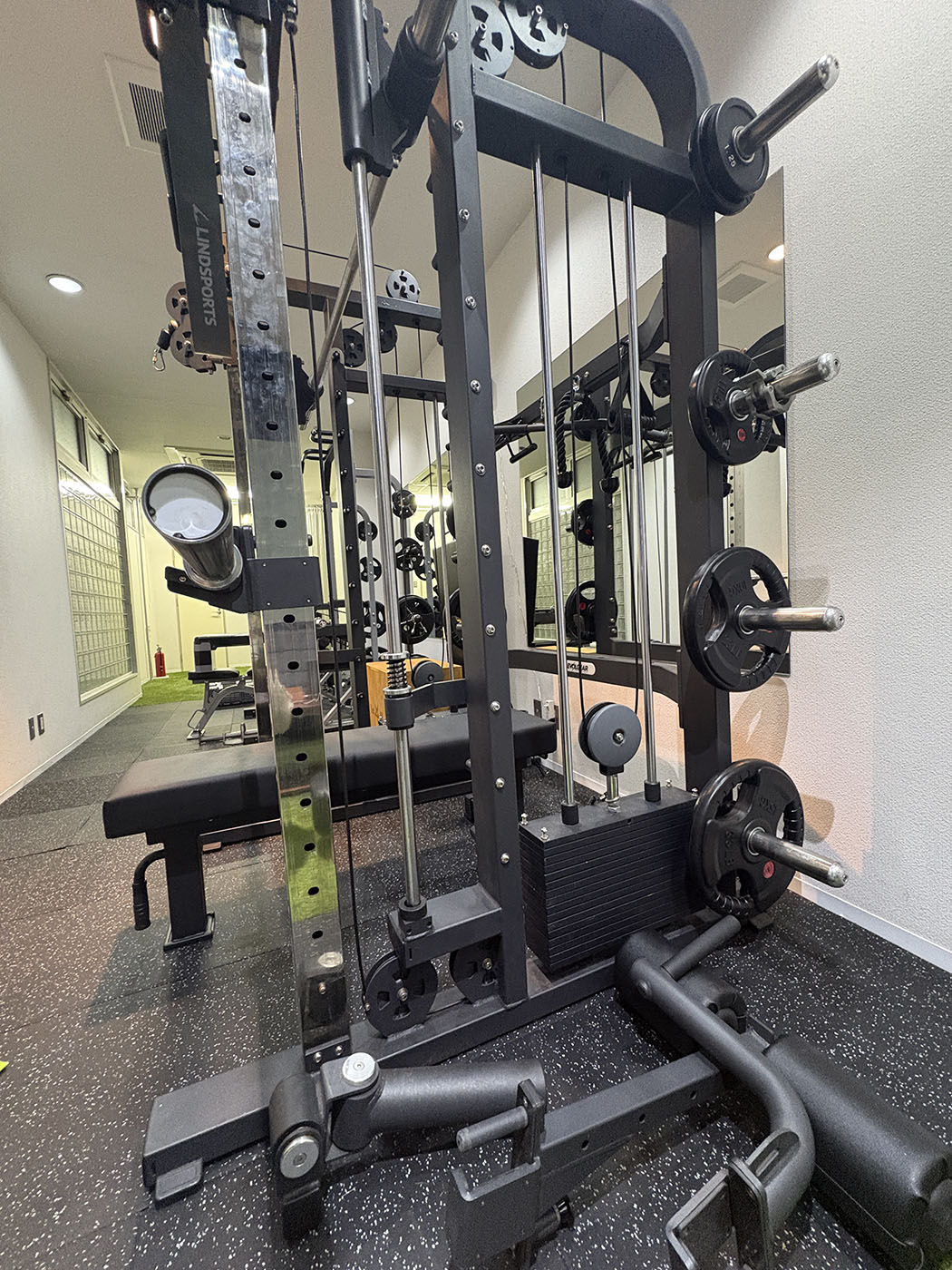 チンニング、スクワット、懸垂など10種目以上のトレーニングが可能な万能マシン。