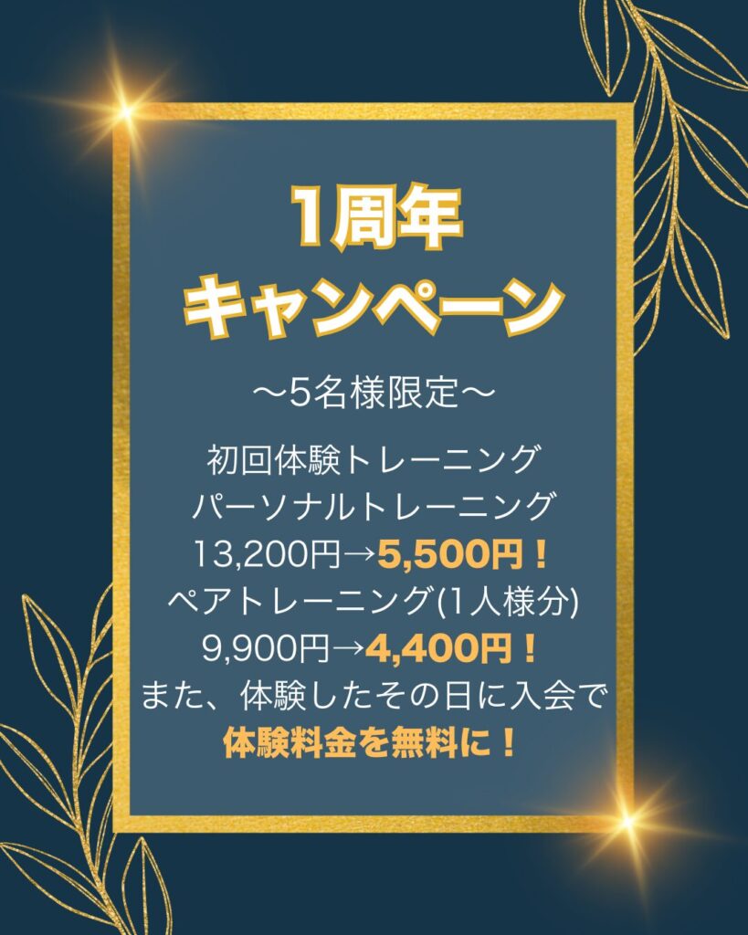 ※パーソナルorペアトレーニング最低3ヶ月継続必須